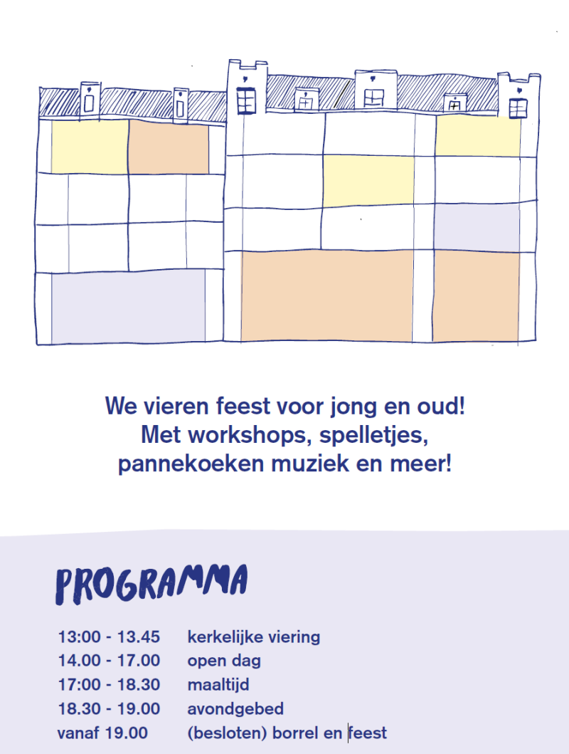 Op zaterdag 25 juni viert de leefgemeenschap haar 10-jarig bestaan. Dat doen we met een viering en een open dag, en vooral heel veel gezelligheid. We hopen jullie ergens gedurende de dag te zien! Wees welkom!